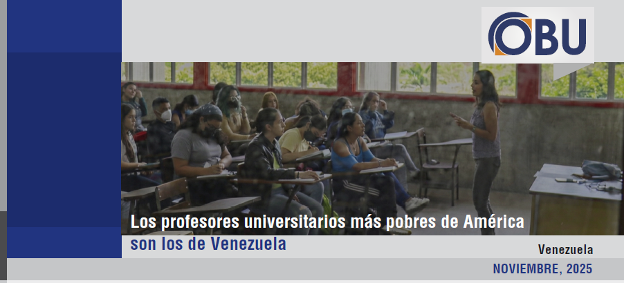 Boletin #19: Los profesores universitarios más pobres de América son los de VenezuelaBoletín OBU04/12/202505/12/2025 El Observatorio de Universidades analiza las condiciones de los docentes universitarios de Venezuela. 000000 Deja un comentario Cancelar la respuestaTu dirección de correo electrónico no será publicada. Los campos obligatorios están marcados con *Nombre * Correo electrónico * Web Comentario * Guardar mi nombre, correo electrónico y sitio web en este navegador para la próxima vez que haga un comentario. Δ